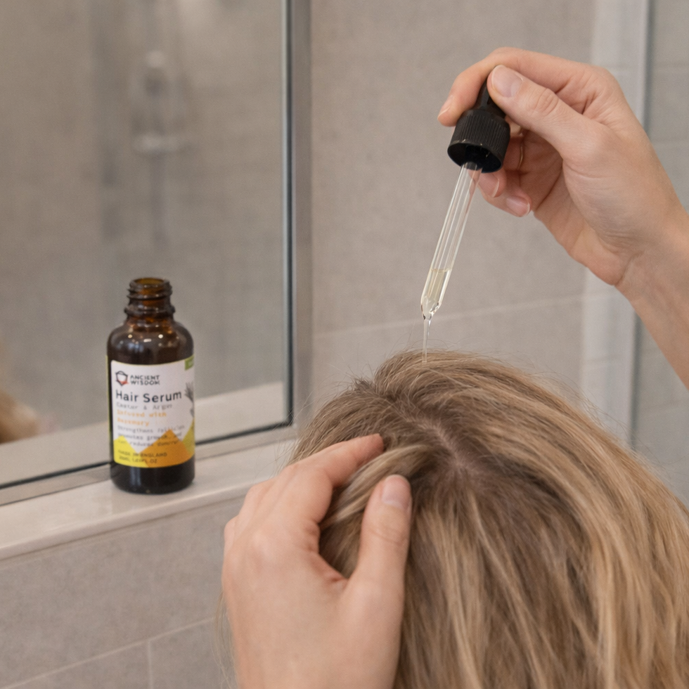 - Rosemary Essential Oil – traditionally used to stimulate the scalp and promote healthy hair growth